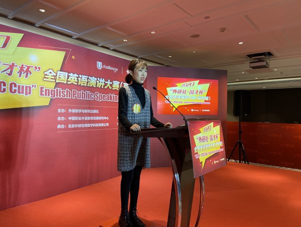 2019年,黃昕婷在北京參加外研社全國英語演講大賽總決賽。受訪者提供